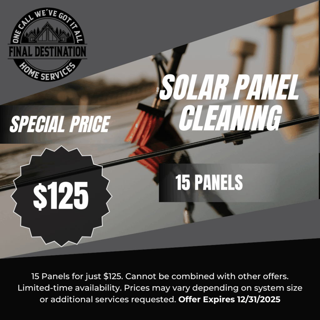 At Final Destination Home Services we have extensive experience in services such as pool maintenance, solar panel cleaning, window cleaning, soft washing, pressure washing, and more. We continually research the best equipment, chemicals, and techniques to stay at the forefront of the industry. This led to the creation of Final Destination Home Services—a company designed to be your one-stop solution for all home service needs.